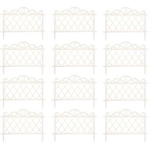A pack of 12 fences. Keep your garden neat and tidy this summer with this set of 12 white border fences. Perfect for use along the flower beds, lawn or along the patio to create a pathway. Edging your lawn is a great way to define and neaten borders to give your lawn a crisp line against your walkways, garden beds or just to create boundaries within your outdoor space whilst providing protection to the grass edge from damage. Made from plastic, this set of white fences are easy to install and comes with 'click and clip' attachments with ground spikes for easy insertion into the ground. Product Dimensions Height: 36cm (including ground spikes) Actual Fence Height: 27cm Width: 48cm Ground Spike Height: 9cm Width: 1.5cm