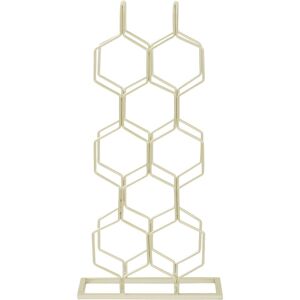 Nine hexagonal forms create a geometric tower in which to display wine bottles. The rack is made from tough, durable iron and features a rich and reflective gold finish. A slim rectangular base, also made from iron, ensures that the rack remains stable on the worktop or table. Coordinate with gold finish accessories.