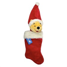 Enhance the excitement of any young one's Christmas morning by placing gifts inside this Winnie the Pooh stocking. Featuring 3D Santa hat pompom details, this stocking is not only charming but also distinctive. Disney Winnie Pattern Christmas Stocking in Red