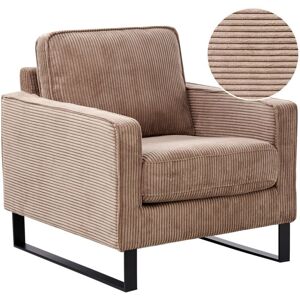 Corduroy Sled Base Armchair. This armchair features a robust frame, standing stable on the stainless steel legs with elegant black finish. Thanks to the corduroy upholstery, the chair looks unique and is a fine addition to the retro-inspired interiors. Granted its neat design, the armchair makes a perfect fit for every living room, bedroom as it will ensure comfortable seating for you and your guests. Details: Product Type: Armchair Style: Retro General Color: Beige, Black Shade: Light Beige Material Type: Fabric Main Material: Corduroy Additional Material: Stainless Steel Filling Material: Foam Legs material: Metal Seat Material: Fabric Material Composition: 75% Polyester Arm Style: Track Armrests: Yes Leg Caps/ Pads: No Pattern: Solid Reclining: No Seat Construction: Sinuous Springs Seat Foam Density: 24 kg/m3 Dimensions: Armrests Height: 62 cm Depth: 85 cm Seat Thickness: 11 cm Seat Height: 44 cm Width: 79 cm Height: 82 cm Seating Surface: 60x48 cm Weight: 22 kg Weight Capacity: