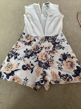 Floaty chiffon playsuit with elegant halterneck design Flattering V-neckline that enhances your dcolletage Stylish open back with tie detail for adjustable fit Lightweight, layered fabric creates a graceful silhouette Relaxed fit through the body for effortless movement This captivating chiffon playsuit showcases a sophisticated halterneck design that's perfect for those nights when you want to turn heads. The flowing silhouette offers both comfort and style, whilst the open back with tie detail adds a flirtatious touch to your evening ensemble. Style with statement earrings, as shown on our model, and strappy heels for a night at the club, or dress it down with metallic flat sandals for drinks with the girls. The versatile design transitions seamlessly from sunset cocktails to dancing until dawn. For cooler evenings, layer with a cropped jacket and accessorise with a small clutch to hold your essentials. This Boohoo piece embodies carefree confidence - ideal for the fashion-forward woman who values both style and comfort for her night out adventures.
