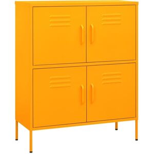 This steel cabinet will keep your house clean and well-organised! This storage cabinet is made of steel, making it sturdy and stable. The storage box has 2 adjustable shelves and levelers on the bottom. The shelves provide ample storage space to keep your DVDs, multimedia appliances, books and small essential items organised and within reach. It is also easy to clean with a damp cloth. Colour: Mustard yellow Material: Steel Dimensions: 80 x 35 x 101.5 cm (W x D x H) Features 4 doors With 2 adjustable shelves With levelers on the bottom Assembly required: Yes WARNING: In order to prevent overturning, this product must be used with the wall attachment device provided SKU: 336137 EU responsible party Haba Trading B.V. Mary Kingsleystraat 1 5928SK Venlo The Netherlands Compliance-safety@vidaxl.com