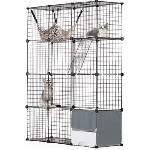 Mophorn Cat Villa: A Haven for Your Cats Generous and Comfortable Living Space The 41 x 14 x 55" cat villa is spacious and cozy, offering plenty of room for cats to have fun, play, rest, and use the toilet. The metal wire frame and thickened PVC plastic board support ensure a safe and stable environment. With buckle splicing, door lock buckle, and zip tie for fixation, you can DIY assemble the cat cage as you like. It comes with anti-slip mats, ladders, hammocks, dual-purpose cushions, and a litter box for cats to climb, rest, and do their business. Huge Cat Cage Robust & Safe Roomy & Relaxing Sturdy Accessories DIY Setup Key Features Sturdy & Secure:This cat cage is made of high-quality metal wire with anti-rust spray powder coating. The thickened PVC plastic board provides stable support, and the reinforced door latch buckle and zip tie ensure its stability. The 1/2'' wire interval is safe for cats. Extra Large Cat Cage:Measuring 41 x 14 x 55"", it offers ample space for cats to