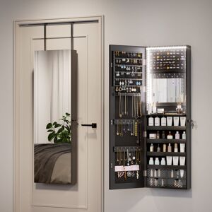 A large full-length mirror is convenient for trying your clothes and checking your outlook. The outside full-screen mirror is clear and real, without distorting the mirror effect. A built-in square mirror with LED lights provides enough brightness to make up and helps you choose the most suitable jewellery. Blue Elephant Colour: Black