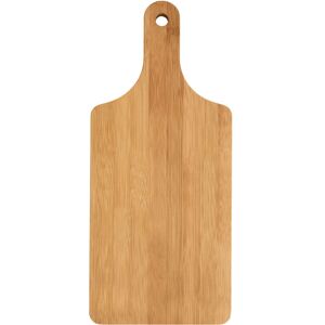 Upgrade your kitchen with the Bamboo Medium Paddle Chopping and Serving Board by Interiors By Premier, a versatile and nature friendly essential designed for food preparation and stylish serving. Made from 100% natural bamboo, this durable and naturally antimicrobial board offers a hygienic and long-lasting surface for chopping, slicing, and serving meals with ease. Designed for both functionality and aesthetics, this medium-sized bamboo paddle board features rounded shoulders that transition into a long ergonomic handle, ensuring a firm and comfortable grip while chopping or serving food. The built-in hanging hole allows for easy storage, making it ideal for kitchens with limited counter space while adding a rustic and natural touch to your kitchen dcor. This multi-purpose chopping and serving board is lightweight yet sturdy, making it perfect for cutting meats, vegetables, and bread, as well as serving cheese, appetizers, and charcuterie at gatherings. The smooth bamboo grain with a rich golden color and darker central trim creates an elegant contrast, making this board as visually appealing as it is practical. Unlike plastic alternatives, bamboo is naturally resistant to stains, odors, and bacteria, making it a safe and hygienic choice for food preparation. The smooth, non-porous surface helps preserve knife sharpness, reducing wear and tear on your blades while ensuring precise cuts. Whether youre cooking daily meals or entertaining guests, this sturdy and stylish bamboo board is an excellent addition to your kitchen. Perfect for home cooks, entertainers, and kitchen enthusiasts, the Bamboo Medium Paddle Chopping and Serving Board provides a blend of style, durability, and sustainability. Whether used for prepping meals, serving food, or as a decorative accent, this board delivers both practicality and charm.