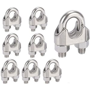 Material: Steel U-bolt cable clamps made of 304 stainless steel for maximum corrosion resistance, moisture resistance and durability. Size: Quantity: 10PCS, Weight: 650g Feature: 309 Stainless Steel Cable Clamp Consists of a U-bolt, a forged saddle and two nuts. The two layers of cable are placed in the U-bolt and clamped in place for a tight connection. Anti-slip threads in the center of the saddle effectively increase friction. Anti-slip U-shaped internal threads, effectively increase friction; forged from high-quality stainless steel, large load-bearing capacity, high safety. Application: Cable clamps are easy to install, disassemble and reuse. They are commonly used for hanging awnings, clotheslines, hanging shade sails, hanging patio lights, suspended floating ceilings, safety pipes, anchor columns, fencing barriers. Product Description Specifications: Material: 304 stainless steel Size: M8 Packing: 10PCS Weight: 650g Product Features: Cable Clamps Etrier made of 304 stainless