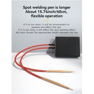 Model: CP01 Product name: Pocket spot welder Battery type: Rechargeable polymer lithium battery Battery capacity: 5000mAh Output voltage: 4.2V (MAX) Output current: 650A (MAX) Design current: 1000A (MAX) Input interface: Type-C charging port Input parameters: 5V/2A USB output: 5V/2.4A (MAX) Recommended nickel strip thickness: 0.1-0.15mm (0.2mm when fully ) Colour:Black Material:ABS Size:102x84x28mm Package Contents: 1 x DIY spot welding machine (different batches of accessories have random styles and colors, and specified colors and styles are not accepted, which does not affect the use) Only the above package content, other products are not included. Note: Light reflection and different displays may cause the color of the item in the picture a little different from the real thing. The measurement allowed error is +/- 1-3cm.