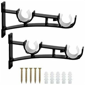 Package included: 2 sturdy metal curtain rods, 4 screws and 4 anchors. Smoothly designed curtain support hooks without burrs. Suitable for holding 2 heavy or small curtain rods at the same time (Suitable for 25-32mm diameter rods) Non-slip buckle design: The heavy-duty metal curtain rod has a non-slip safety buckle inside , so the bracket can hold the curtain rods firmly in place, to prevent sliding when the curtain is pulled. Strong load-bearing capacity: The curtain rod bracket made of high quality aluminum alloy, sturdy and durable to use, high hardness, not fade. It can hold up to 50 kg/ 110 lbs, holding rods with a diameter of 1 cm to 3 cm Easy Installation: First confirm the position to be installed, then fix the curtain rod bracket with our screw and place your curtain rods on it. It's not only a curtain accessory, but also can be used as an outdoor bracket to hold rods. Wide Application: The classic black curtain rod bracket is perfect for living room, bedroom , wardrobe,
