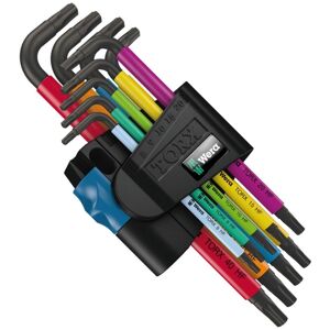 The Torx keys have circular, easy-to-grip plastic sleeves and are easy to identify, thanks to their colour coding and size markings. They are supplied in a wear-resistant clip, which ensures that the keys are securely held, yet are easy to remove. Wera 9 Piece Torx L Key Set The Torx keys have circular, easy-to-grip plastic sleeves and are easy to identify, thanks to their colour coding and size markings. They are supplied in a wear-resistant clip, which ensures that the keys are securely held, yet are easy to remove. “Take it easy” tool finder system – with profile and size colour-coding for quick and easy tool selection. Colour-coded system for hexagon drive screws (L-Keys, Zyklop bit sockets), external hex drive screws and nuts (Joker wrenches, Zyklop sockets and Zyklop bit sockets with holding function), and TORX® drive screws (L-Keys, Zyklop bit sockets) The Wera HF profile (HF = holding function) has a very special geometry. The geometric form fit and the wedging forces that are
