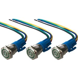 Specifications: ●Material: Stainless Steel + Brass + Plastic ●Size: Thread Diameter (Mounting Hole): 19mm Head Diameter: 22mm < br/> Switch Length: 35mm Wire Length: 15cm ●Weight: 25g ●Color: Switch Color: Silver + Blue Led Color: Green ●Package Include: LED Push Button Switch X 3Pcs Power Outlet Wire X 3Pcs Waterproof Rubber Ring X 3pcs Product Parameters: Operation Type: Self-Locking Type Switch Combination: 1 NC, 1 NO, 1C Rated Current: 5A Rated Voltage: 12V / 24V Contact resistance: 50mΩ Insulation resistance: 1000mΩ Protection level: IP67 Type of terminal: 5 pin, with socket wire Operating Temperature: -20℃~55℃ 100% Satisfaction Guarantee: ●If the goods are defective or have any other problems, please feel free to contact us by email. ●We will answer your questions promptly. ●We will do our best to meet your needs. ●We can give you 100% money back if you are not satisfied with our products. ●We strive to bring you only the highest quality products and the best service, your