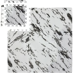 With these training mats, you minimise noise during home workouts and protect your floor from scratches and dents at the same time. The 45-piece puzzle mat set can be put together as desired and is the perfect base for sports equipment or weights. The underlay mats can also be used for yoga, gymnastics and other sports exercises. After use, the fitness mats can be stored in a space-saving way. Thanks to the beautiful look, the mats are also very decorative. Floor protection mat set of 45 in detail - Dimensions per mat with interlocking W x D: approx. 31.5 x 31.5 cm - Dimensions per mat without interlocking W x D: approx. 27.5 x 27.5 cm - Thickness per underlay: approx. 1 cm - Total area: approx. 4.25 m² - Weight per pad: approx. 70 g - Material: EVA foam, BPA-free - Colour: White marble Gym mats for training at home - For fitness equipment and home workout - Can be individually assembled and extended - Shock- and sound-absorbing effect - Protects floor from scratches and dents - Can