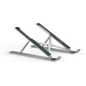 Durable Premium Foldable Laptop Stand Rise is a universally adjustable stand for laptops and tablets up to 15 inches. Space-saving, foldable and portable it is also height adjustable in 6 easy steps. Facilitates ergonomic working with its flexible height and tilt angle adjustability. It has a maximum load capacity of 5kg. Non-slip rubber pads protect against scratches and comes complete with a practical travel bag.