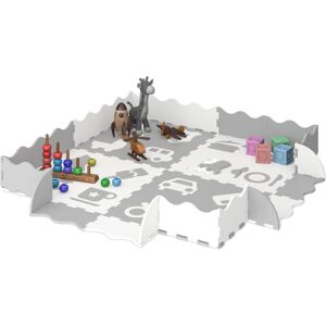 The colourful children's play mat with double-sided print is sure to be fun for the little ones. One side has a forest motif full of trees and owls. The other side features zoo animals standing on top of each other and a practical measuring stick. The rectangular baby mat consists of 6 large foam mats that together form a colourful picture. The edge pieces round off the ends of the puzzle. The easy-care crawling mat is also a shock-absorbing surface for playing on the floor. Tip: Take a photo of your baby lying next to the measuring stick every month. This is a great way to document how your little one is growing. Baby foam mat in detail - Total with edge H x W x D: approx. 1.5 x 120 x 175 cm - Puzzle piece per W x D: approx. 56 x 56 cm - Edge piece per W x D: approx. 56 x 2-5 cm - Total weight: approx. 1 kg - Material: XPE foam - Motif on both sides in bright colours Puzzle mat for the children's room - Printed floor puzzle mat for creative play - With 2 cute designs for boys and