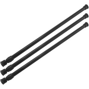 Description: 1. Easy to use, twist and fit. Designed for use with lightweight fabrics. Adjustable & No damage wall or wardrobe. 2. Easy Installation: Slide your net or voile curtain onto the rod and push the rod into position. Twist the rod to extend to your desired length, allow an extra 1-2cm length to ensure that the rod fits tightly and securely inside your recess. Specification: 90cm:maximum 90cm minimum 55cm Retractable length. 150cm:maximum150cm minimum 84cm Retractable length. 190cm:maximum 190cm minimum 103cm Retractable length. Diameter: 10-13mm (90CM), 19-22mm(150CM & 190CM) Type: Extendable Curtain Pole Features: Telescopic Colour: White Material: Steel Suitable for: Curtain/Shower/Bathroom/Window Package included: 3 x Extendable Spring Rods
