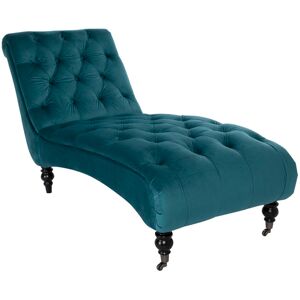 A perfect blend of old meets new. This sleek and modern chaise lounge chair combines the decorative sophistication of deep chesterfield buttoning on the back and seating with the vibrant and luxurious feel of polyester velvet fabric. The dense foam filling ensures maximum comfort, while the hardwood frame and stylish wooden feet in the back provide stability and durability. Handmade - exact measurements may vary slightly. Brush/steam velvet fabric to remove any transit pressure marks & give the fabric its plush look. Shades may appear slightly different under different lighting, our chairs are photographed under bright studio lights. If in doubt, please order a fabric sample. Rosdorf Park Upholstery Colour: Navy Blue
