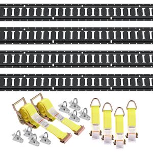 Practical E Track Tie-Down Kit 18Pcs Kit & Spring Fitting & Efficient Bundling If you are looking for excellent tie-down straps for your E-track or want to secure large cargo, VEVOR’s E-track ratchet straps are the right choice for you. Get ready for enhanced security and reliability during all of your jobs. Transporting all your precious cargo safely and making loading or off-loading a piece of cake! High-Quality Polyester Fabric Single-Handed Length Adjustments Keep Your Goods Strapped Down Perfect for E-Track Versatile Ratchet Straps Key Features High-Quality Polyester Fabric: The ratchet belt made of high-strength polyester is 2" wide, 15 ft (4.57 m) long, and has outstanding waterproof and tensile strength. Get ready to feel enhanced support and reliability for years to come. Single-Handed Length Adjustments: The ergonomic ratchet handle and release lever are more accessible to fasten and loosen than most straps. The ratchet allows easy one-handed length adjustment and maintains