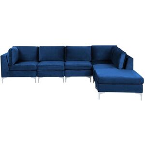 Upholstered Modular Corner Sofa. This upholstered, modular couch is going to transform your living room into a lounging zone. The set consists of multiple modules, which you can connect together, to achieve a classic, corner couch, or use them as standalone furniture that offers extra seating space. All pieces are covered with high-quality faux leather, that with its elegant look, will surely turn the heads of all your houseguests. The construction is also very stable thanks to synthetic legs, and thick padding guarantees comfort during use. Details: Product Type: Modular Sofa Style: Modern General Color: Black Material Type: Faux Leather Main Material: Faux Leather Additional Material: Eucalyptus Wood Filling Material: Foam Material Composition: 100% Polyester Shape: L-Shaped Arm Style: Track Fabric Upholstered Back: Yes Leg Caps/ Pads: No Orientation: Right Hand Pattern: Solid Seat Construction: Sinuous Springs Seat Foam Density: 30 kg/m3 Seats Up To: 5 People Dimensions: Armrests