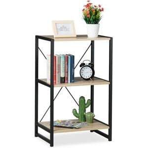 The shelf suits every purpose with a functional design and look in any room. Standing in the living room, the shelf can be used to display decor and books. The wooden bookcase can also be placed in an office for files and other office supplies. A practical solution in the pantry or kitchen for packaged goods or utensils. The light-coloured Sonoma oak look combined with a black metal frame give this piece an impressive industrial style. It can be secured to a wall using a bracket. Small Shelf Unit - Size H x W x D: app. 80 x 50 x 35 cm - Weight: app. 7.6 kg - Material: PB/metal - Colour: Brown, black - Capacity: app. 10 kg per tier - Distance between shelves: app. 32 cm All-round Shelving Unit - 3 open tiers - For books, decor, etc - Assembly is quick and easy - Multifunctional storage - Modern industrial design Included in Delivery - 1 x Bookshelf in Pieces - Assembly Instructions and Materials - Decorative items shown in product photos are not included