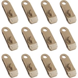 【Unique Design】The clip is designed as a tooth-shaped locking clip, and the screw buckle design can maximize the tightening of the tarp without damaging it. There is a hole on the other side of the clip for connecting metal buttons or ropes. 【Wide Application】Can be used for outdoor camping tents, tarps, awnings, caravans, canvases, poles, boat covers, swimming pool covers, sailboats or picnics, temporary shelters or any fabric cover that requires additional support points. 【Quality Material】Made of high quality nylon plastic, these tarp clips are sturdy and durable, can withstand strong pulling force, and will not come loose easily after being attached to tents. < p>【Wind Resistant】These tent clips can withstand strong winds and are waterproof. Small and lightweight, easy to carry and store, a pack of 10 can meet the needs of most tents. 【Easy to use】Grab the edge of the canvas, press the screw of the clip and tighten it. You can use the screw to adjust the tension of the clip, and
