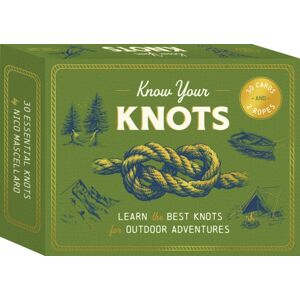 Head to the woods and hang up your hammock in style, once you know your knots!A practical knot-tying kit with 30 easy-to-learn knot instruction cards. Including two practice ropes, each 60cm long and 8mm in diameter. Organised by best use: Find out which knot to use to moor a boat, secure a hammock, make a raft, and many more. The perfect gift for outdoor enthusiasts, knot improvers and complete beginners.Practice essential knots for outdoor life with this handy kit, containing two 60cm lengths of rope.Get to know which knot to use when – put up a rope swing with the swing hitch, make a den with a tripod lashing, and tie a lasso with a honda knot – and you’ll be ready for adventure.Inside the box you’ll find 30 illustrated instructional cards with key tips on which knot to use when, plus two practice ropes each 60cm long and 8mm in diameter.A QR code inside the box lid links to the author’s expert videos to get you started.Endorsed by experts @knotsandcues, this deck provides all the information you need to be confident using ropes in the outdoors.