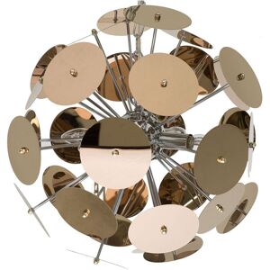 Industrial Ceiling Light. A unique designed ambient ceiling light that highlights any interior, whether in industrial or modern settings. Featuring a spherical pendant comprised of numerous metal disks in a glossy copper finish, the piece reflects natural light and mirrors the environment it is set in. The four-light fixture allows for complete illumination of the room, while thanks to its unusual design, the pendant casts playful shadows on the walls. Details: Product Type: Pendant Light Style: Modern General Color: Copper, Silver Material Type: Metal Main Material: Stainless Steel Additional Material: Metal Shade Material: Stainless Steel Wattage: Max. 40 W IP Protection Code: IP 20 Light Bulbs Required: 4 Voltage rating: 230 V (50/60 Hz) Dimensions: Cord Length: 105 cm Depth: 50 cm Width: 50 cm Height: 158 cm Weight: 3 kg Offer Includes: 1 x Ceiling Lamp, Not Included: Light Bulb Key Features: Openwork Structure Projects Great Shades, Works Splendidly as an Ambient Light,