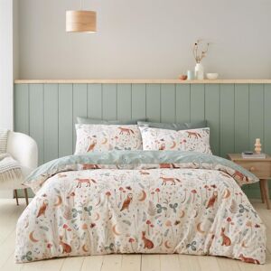 Create wonder and enchantment in your bedroom with this folklore style bedlinen. Featuring illustrations of the fox, the owl and rabbits, this bedlinen will add an element of charm and whimsy to your room. This fully reversible set features a star and feather pattern in a lighter tone providing an effortless backdrop. Created from easy-care recycled polyester and soft cotton, blended for everyday use. Catherine Lansfield is renowned for style and quality - designed and developed in Great Britain. Contents: Single duvet cover (135x200cm) and 1 pillowcase (50x75cm). Material composition: 52% Polyester 48% Cotton. Care instructions: Machine Washable.