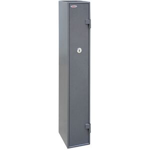 Introducing the PHOENIX TUCANA GS8015 Series – a premium range of gun safes, expertly designed to safeguard 3, 5, or 7 firearms. Tested to British Standard BS7558/92 and 100% Police Approved, these safes provide unmatched security. Certified to European EN14450 S1 standards, they offer a cash cover of £2,000 and valuables cover of £20,000. Equipped with a high-security 7-lever lock, complete with two double-bitted VdS Class I keys and 3-way locking bolts, your firearms are always protected. Each safe includes an internal ammo box with its own key lock for added safety. The robust, galvanized steel construction ensures durability, while the high-density foam divider and floor mat offer superior protection for your guns. Pre-drilled for easy wall or floor fixing, and finished in a sleek, durable Metallic Graphite paint, the PHOENIX TUCANA gun safes blend security with style.