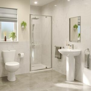 Key Features: Lightweight aluminium frame 4mm safety glass 20mm adjustability 1850mm shower door & side panel height Easy-Grip handles Quick and easy to install Reversible doors CE marked 3-year guarantee (guarantee excludes seals and moving parts which are covered for 12 months) What's Included: 1x Hydrolux Pivot Shower Door 800mm - 4mm 1x Hydrolux Side Panel 800mm - 4mm Please note: a is not included Elevate your daily routine with the Hydrolux Pivot , a premium shower solution designed to enhance your showering experience while adding a touch of elegance to your bathroom décor. Crafted with style and functionality in mind, this stylish pivot shower door and side panel combination is the perfect addition to any bathroom. Lightweight, polished aluminium frames Made from polished aluminium, this enclosure blends perfectly with most bathroom colour schemes and is lightweight for faster and easier installation. 4mm thick safety glass This enclosure uses thermally toughened 4mm safety