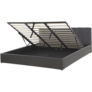 Faux Leather Bed Frame with Storage. Add this modern bed offering a simple, yet elegant look to your bedroom. Its functionality along with clean-line design makes it an ideal centrepiece of every interior. The bed frame with the slatted base gives sufficient support for the mattress and guarantees good night sleep. The headboard of the bed covered in faux leather upholstery elevates the warm, inviting look of the piece. The capacious hidden storage proves to be useful, especially in limited spaces, as it offers extra room for your bedding, pillows or blankets. Details: Product Type: Double Bed Style: Traditional General Color: Grey Shade: Dark Grey Material Type: Faux Leather Main Material: Faux Leather Additional Material: Synthetic Material Storage Material: Nonwoven Fabric Material Composition: 100% Polyester Fabric Upholstered Back: No Storage Type: Ottoman Storage: Yes Dimensions: Headrest Dimensions: 191x87 Width: 191 cm Storage Dimensions: 200x180x23 Length: 214 cm Height: 90