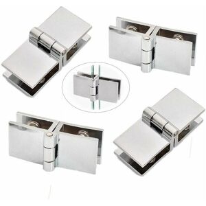 Material: Zinc alloy. Durable, rust-proof and wear-resistant. Brushed polished surface. Model: 180° double-sided clip hinge, suitable for 5-8mm glass thickness. Applicable to: glass doors such as showcases, wine cabinets, bathroom doors, etc. Easy installation and long life. Contents: 4 door hinges