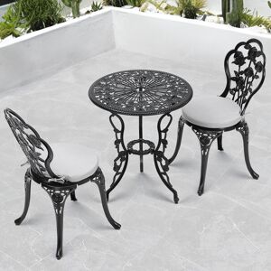 Brighten your outdoor space with the garden furniture set, a charming bistro, or a chic lounge addition for small spaces. This small balcony furniture set has two chairs and a matching glass-top table. Powder-coated steel frames offer a strong core to bistro table and chairs. Soft seat cushions make this small garden furniture a stunning and cosy corner for friend hangouts, daily talk and sunset viewing.- Three-piece set: a round garden table and two chairs for small spaces; - PE rattan wrapped on steel frames to resist rust, UV and weather; - Each chair with a wide seat, back support and sloping armrests; - Soft seat cushion with fixing straps for extra comfort; - Tempered glass top table, easy to clean; - Reinforced legs for firm support, with adjustable foot pads; - Assembly required within an hour by two people;- Colour: Light Grey, Beige, Black; - Material: Steel, PE Rattan, Polyester, Tempered Glass; - Chair Dimension: 63W x 65D x 76H cm; - Table Dimension: Φ45 x 46H cm; - Seat Size: 56W x 46D cm; - Seat Height: (without cushion) 42 cm; - Back Size: 44L x 56W cm; - Cushion Size: 45L x 45W x 5D cm; - Weight Capacity: 120 kg (chair), 30 kg (table); - Item Label: 863-174V70LG; - Note: Please use a furniture cover for less rust and fade.; Astoria Grand