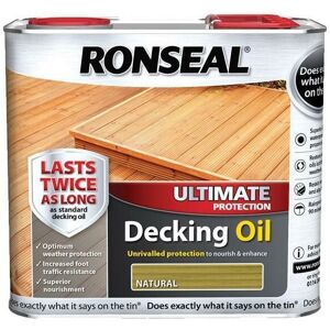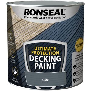 Ronseal Ultimate Protection Decking Paint Ronseal Ultimate Protection Decking Paint transforms all types and ages of deck, filling in small cracks and covering grey wood. Fills cracks and locks down splinters All weather protection Smooths rough surfaces Rescues tired decks Application - Brush, Pad Number of Coats Required - 2 Coverage - 2m2 / Litre