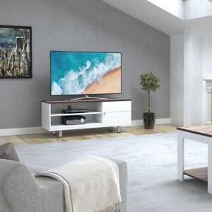 With a blend of modern and traditional styling, combining a rustic wooden top with a smooth satin white or white finish, this TV stand is the perfect piece to create a contemporary homely feel in your living room. Designed for ease of assembly, this TV stand features a large open aperture, ideal for soundbars and other large equipment. Ample closed storage with premium soft close hinges and cable management to keep wiring organized neatly out of sight. Latitude Run Colour: Grey