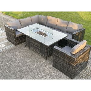 Important: Please put the gas fire pit on the glass top not under the glass .Do not cover the igniter with lava .please refer to the picture in the listing. we strongly recommend using 5 kg gas tank. Before using the fire pit ,please check it carefully if there is any leakage at the joint place or the hose . if the gas bottle is not fixed correctly or the hose has some leakage it may cause danger . Set dimensions: • 1x 3 Seater Sofa with double armrest Size: 177W x 65D x 66H cm • 1x 3 Seater Sofa with single armrest Size: 167W x 65D x 66H cm • 1x Chair :74W x 65D x 66H cm • 1x Firepit Table : 140L x 80W x70H cm Dark grey mixed rattan with dark grey fabric .Color may vary due to light or monitor .we are unable to return the item due to this problem .please consult before purchase if you have requirement on color saturation. Great Price Compared With Other Online Or Offline Store For Fire Pit Set. Items Comes Flat Packed And Easy to Assemble,Sturdy Galvanized Steel Tube Metal Frames