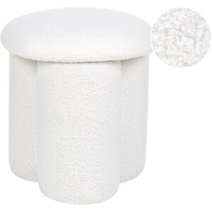 Mushroom Shaped Footstool. Refresh the decor of your living space with this upholstered pouffe. Made out of bouclé fabric, the piece is very pleasant to touch and soft - it will surely bring a modern, cosy mood to your home. Stable base makes it great as an extra seating space or as a footstool, but it will also look great as a decorative accent, placed near a sofa or armchair. Details: Product Type: Pouffe Style: Modern General Color: White Shade: Off-White Material Type: Fabric Main Material: Boucle Additional Material: Plywood Filling Material: Foam Material Composition: 100% Polyester Shape: Round Pattern: Solid Seat Foam Density: 28 kg/m3 Storage: No Dimensions: Depth: 40 cm Width: 40 cm Height: 45 cm Seating Surface: 40x40 cm Weight: 3 kg Weight Capacity: 150 kg Offer Includes: 1 x Pouffe Key Features: Chic Look, Works Great with Many Interior Styles, High-Quality Materials, Exceptionally Easy Care, Multiple Applications Assembly Information: Does Not Require Assembly