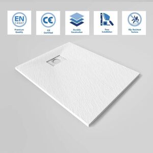 ELEGANT White Slate Effect Lightweight Slate Shower Base Size: 1000x800x30mm,Extra flat,Surface or recessed installation. Lightweight slate,heat resistance,corrosion and wear resistance (SMC composites). Made from a patented SMC blend with a slate textured finish,slip resistant,fire resistant and corrosion resistant. Special hidden centre waste design,Matches shower tray covering and long lasting to prevent stains. Back of the tray has a net design framework supporting structure,for better weight endurance and durability. Waste is included,size:Ø90mm.materail:ABS. Kit Content : Shower Tray free 90mm waste trap Stainless steel drain cover