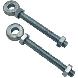 x2 22MM x150MM Zinc Plated Swing Gate Eye Bolts With 2 Nuts Size - 22MM x 150MM Finish - Zinc Plated Product Code A (MM) B (MM) C (MM) D (MM) E (MM) F (MM) SFZPSB10100 9.6 97 108 10.9 19.9 120 SFZPSB12100 11.6 100 116 12.5 31 132 SFZPSB1265 11.4 68.3 82.1 14.2 29.6 97.5 SFZPSB16100 15.5 90 115 18 38.9 135 SFZPSB16150 15.6 140 165 18.1 39.3 182 SFZPSB16200 15.5 197 220 18.4 38.1 240 SFZPSB20102 19.3 100 125 21.7 45.6 150 SFZPSB20150 18.8 130 160 20 43 180 SFZPSB20200 19.4 195 220 21.6 45.9 245 SFZPSB20227 19.4 220 250 21 45.3 270 SFZPSB20250 19.4 250 270 21.3 46.3 295 SFZPSB22150 21.5 150 178 24 48.8 203 SFZPSB24150 23.3 150 177 26.6 49.9 200 SFZPSB24200 23.3 200 225 26.6 50 250 SFZPSB24250 23.3 250 280 26.8 49.6 300 Our Zinc Plated Swing Gate Eye Bolts Have Many Uses Such As Hanging Metal And Wooden Gates. These Eye Bolts Are Commonly Used In Marine, Home And Garden Applications. Please Note We Supply A Huge Variety Of DIY Hardware & Equipment ***FREE DELIVERY*** Product Code
