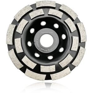 Double row design with 18 diamond segments for 7/8" drive 4-1/2 inch (115 mm outer diameter), 3 mm thick steel body and 4.5 mm workable thickness 40-50 diamond grit for grinding CONCRETE/MASONRY/GRANITE/MARBLE/BRICK... Double row design for aggressive and fast material removal Strong steel body offers stable cutting performance and good surface finish at lower cost to save money