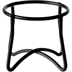 Formed from thick iron wire, the durable Modern Retro single egg holder features a circular top and four curved legs that join and intersect to create a cross design base. The distinctive base has a subtle upward arch, replicating the curved shape of an egg. A matte black finish adds character to the metal frame.