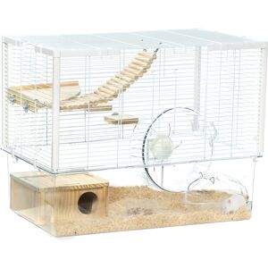 Feature: Platform and ramps for pets to move around easily Food dish and water bottle for simple feeding Wheels at the bottom for easy movement Deep base allows for straightforward cleaning and bedding Narrow 0.8cm steel wire spacing, preventing pets from escaping Dual-opening doors ensure hassle-free access and pet interaction A suitable size for dwarf and Syrian hamsters, as well as gerbils Assembly required Specification: Colour: Black Material: Steel and PP Overall dimensions: 57H x 57L x 43Wcm. Base: 35H x 57L x 43Wcm. Main cage: 24H x 51L x 36Wcm. Door: Front/top: 12.5H x 12.5Wcm. Layer: 35L x 25Wcm. Ramp: 40L x 8Wcm. Food dish: 3.5H x Φ10cm. Water bottle: 125ml. Wire spacing: 0.8cm Item label: D51-431V00BK 1 x Hamster cage 1 x Ramp 1 x Food dish 1 x Water bottle 1 x Manual