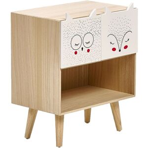 Animal Themed Nightstand. Add a touch of whimsy to your child's bedroom with this charming bedside table. Featuring playful, animal-themed drawers and a natural wood finish, this piece combines a fun design with practical storage. Perfect for keeping bedtime essentials within reach, it’s a delightful and functional addition to any cosy sleep space. Details: Product Type: Bedside Table Style: Modern General Color: Brown, White Material Type: Engineered Wood Main Material: MDF Additional Material: Paulownia Wood Frame Material: Engineered Wood Legs material: Wood Top Material: Engineered Wood Drawers: Yes Finish: Painted Leg Caps/ Pads: Yes Number of Drawers: 2 Shelves: Yes Dimensions: Depth: 25 cm Width: 40 cm Height: 46 cm Weight: 3 kg Drawer Weight Capacity: 1 kg Top Weight Capacity: 25 kg Offer Includes: 1 x Bedside Table Key Features: Open Shelf for Easy Access, Easy Access Storage for Kids, Functional and Capacious Drawers, Great Addition to a Nursery or Child's Bedroom, Creates a