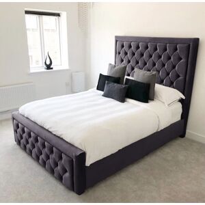 Combining contemporary stylings with luxury in a sleek, simple frame, the bed range is a skillfully crafted, statement piece. The linear headboard features a pronounced border, highlighting the centre panel with a deep buttoned Chesterfield design. This design is mirrored in the footboard which is slightly raised above the mattress, and both the headboard and footboard are padded to ensure maximum comfort. The simple side rails and metal tube feet seamlessly tie the piece together, ensuring that the bed range is a modern showstopper that will capture everyone’s attention. Available in a range of on-trend colours in the ever popular plush soft velvet fabric. Rosdorf Park Size: Super King (6'), Colour: Charcoal