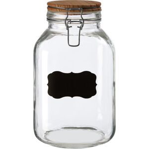 The jar is made from clear glass and is ideal for storing a variety of dried foods. A black chalkboard label on the front adds to the vintage design and adds to its versatility. The lid is made from solid wood and has a light brown colour with a bold grain.