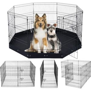 Features & Details Versatile Use: This dog playpen is composed of 8 panels that can be arranged into a 24" side-length octagon, providing a spacious area for pets. The door opens all the way to the top, while the top cover can be zipped open for easy access by the owner. Ideal for Various Pets: The 30" high dog pen is perfect for accompanying medium-sized dogs from puppy to adulthood. It is suitable for breeds such as Border Collies, Schnauzers, Shelties, as well as cats, rabbits, ducks, and guinea pigs. Waterproof and Durable Top Cover: The top cover of our exercise pen is composed of half 600D heavy-duty Oxford fabric and half reinforced PVC mesh, which is scratch-resistant, easy to clean, and sun-resistant. It prevents pets from jumping out while ensuring ventilation and light penetration to reduce any sense of confinement. Escape Prevention: 8 long ground stakes and 1 reinforced stake securely anchor the pet playpen in place. Dual door latches and 1 carabiner clip keep pets from