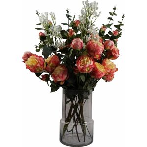These artificial flower arrangements come with the vases � a complete pack of everything you need to create the display shown in our photos. When arranged as we have it shown in our photos this measures 60cm x 45cm x 45cm. Stems are wired and this can be shaped to your requirements. This pack contains the following: 1 x LEAF-40595 26cm grey smoke glass vase 26cm tall x 17cm x 17cm at widest points and the slightly narrower top rim measures 15cm diameter.6 x LEAF-40614 55cm pink peony artificial flowers spray - each with four flowers and three buds. 3 x LEAF-40647 65cm artificial gypsophilia spray. 3 x LEAF-40659 100cm artificial eucalyptus foliage. Flowers and foliage are supplied loose at full length ready for you arrange. You can cut these shorter if wanted for arrangement (very easy- just use wire cutters) or you can just fold the stems at the ends before putting them in the vase