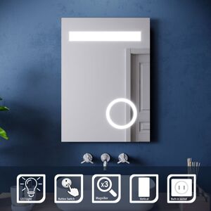 500 x 700 mm Bathroom led Mirrors with Shaver Socket with 3x Magnifying Wall-Mounted Vanity Rectangular Mirror with Button Switch - Elegant