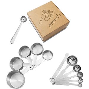 Material: Stainless Steel Design: With locking ring, can be stacked to save space. You can also separate them and use them individually. Equipped with a handle for easy use. When not in use, they can be hung on the container with a hook. How to Use: When cooking in the kitchen, you can use different scales to measure different ingredients, such as oil, salt, spices, etc., to achieve a relatively stable taste. In other applications, such as eating honey, herbal ingredients, making coffee, etc., where measurement is required, they can be used.