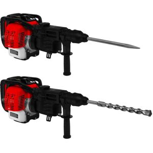 GENERAL DESCRIPTION Revolutionise your drilling and demolition tasks with T-Mech's 2 stroke petrol hammer drill breaker - a powerful and versatile tool. It can function as both a drill and a demolition hammer, making it suitable for heavy-duty concrete and masonry tasks. With a simple switch and two attachments, you can easily alternate between drilling precise holes and breaking up concrete, brick, or stone. This tool features a robust 0.9kw, 2 Stroke, 32.6CC, Single Cylinder, Air Cooled Engine, designed for power and efficiency. It delivers optimal performance with a maximum speed of 7500 rpm and a peak torque of 1.45 N.m at 5000 rpm. The compact design ensures a high power-to-weight ratio, ideal for demanding jobs. Weighing 10.5kg and equipped with an adjustable handle, the drill is ergonomic and reduces user fatigue. Being petrol-powered means you are not limited by cords, and the trigger allows for speed adjustments for better control. T-Mech's 2 Stroke Petrol Hammer Drill