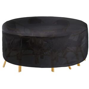 Durable Material: Made of premium Oxford fabric, anti-aging, long service life, good waterproof performance, UV protection, heat dissipation, high strength. Windproof Protective Cover: There is a drawstring on the edge of the circular table cover, and a nylon buckle on the four corners of the garden table cover for easy covering and removal. Tear Resistant & UV Protection: Made of high quality material and bound edges for complete protection against cracking. UV resistant design provides exceptional durability in sunlight. Easy to Clean & Store: Simply wipe the dirt with water and it will disappear and dry in the sun for next time. Just hose it down with water and the dirt will disappear quickly. Dry in the sun for next use. Dimensions: Large enough to cover your table, chairs. Check your furniture for a perfect fit. Product Description Description: Made of high-density Oxford fabric, weatherproof and dustproof. The inner layer has a UV-resistant coating and provides exceptional