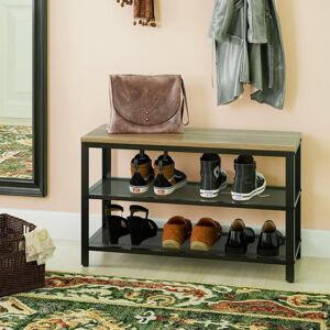 This stylish and elegant two-tiered shoe rack features a sturdy metal frame. It will take pride of place in any hallway or bedroom. An ideal space-saver and storage solution, you won't better a classier way of organising your shoes than this neat shoe rack With generous proportions of H45cm x W75cm x D30cm, the shoe rack is sizeable enough to allow to declutter several pairs of shoes, but slim enough so that the piece can be placed effortlessly anywhere around the home. The two-tiered mesh effect shelving is really the star of the show here. Not only does it provide you with the storage space, in delivers in abundance in the style stakes too. The shoe rack is a classic design staple, but it offers bags of versatility. You can use it as you see fit anywhere in the home to great effect. Features Neat and compact Oak effect table-top 2 Tiers Assembly: Required Material: Metal and MFC Board Finish: Powder Coated Colour: Black Height: 45cm Width: 75cm Length: 30cm